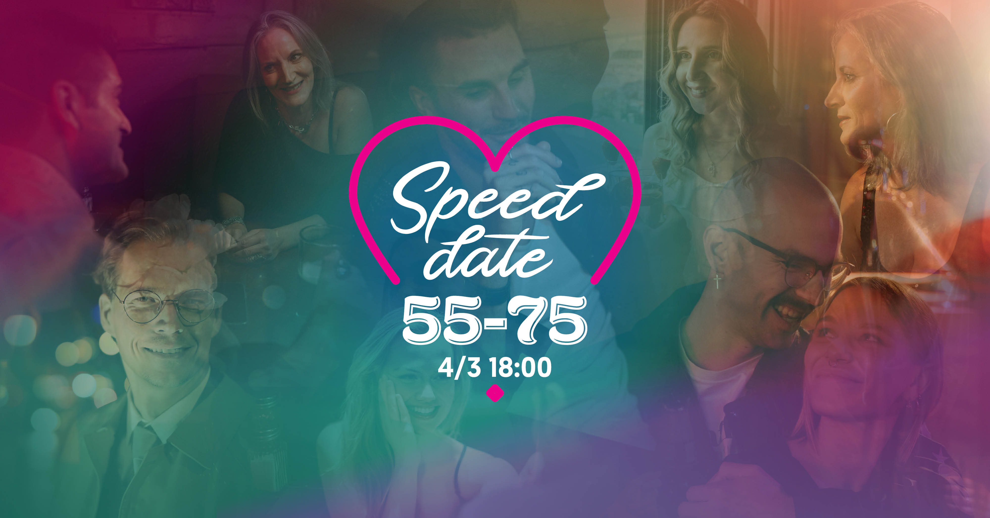 På Speed dating blir du kjent med flere single på en kveld og gjennom korte møter får du muligheten til å kjenne på kjemien med alle. Hvis praten stopper opp, har vi konversasjonskort for å hjelpe samtalen videre. All matching foregår i etterkant slik at du kan slappe av og bare være deg selv.